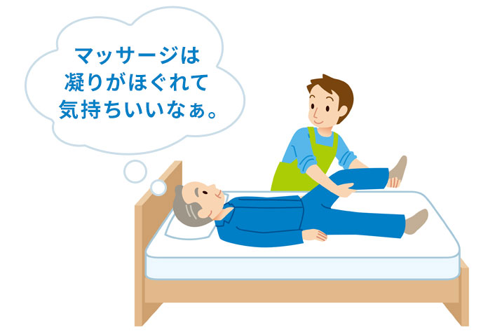 少し紛らわしいのですが、理学療法士らがマッサージのような手技を行うこともあります。これは固まった筋肉や関節をほぐし、動きの学習を行いやすくするための準備です。疲労回復やリラクゼーションのマッサージとは、まったく意味が違うので覚えておいてください。